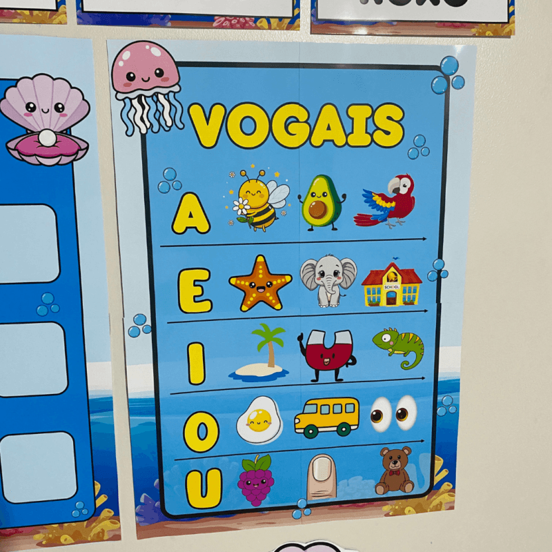 O Kit Sala Fundo do Mar foi desenvolvido com muito carinho para tornar o ambiente ainda mais acolhedor, organizado e lúdico para as crianças.